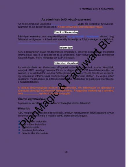 • a vállalkozás szervezésének módját, felépítését, ha van, itt lehet egy szervezeti ábrát is beilleszteni,