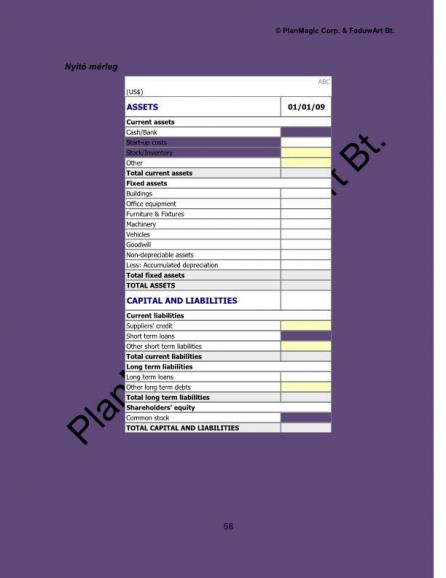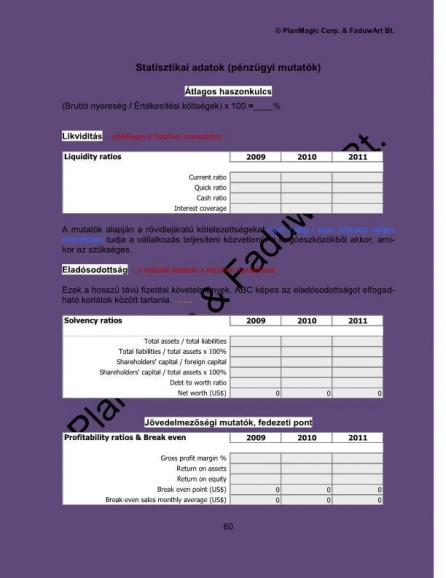 • kezdő vállalkozás esetén: becsült induló költségek, nyitó és zárómérleg valamint eredménykimutatás egy-öt évre, készpénzforgalmi előrejelzés havi bontásban egy-három évre,