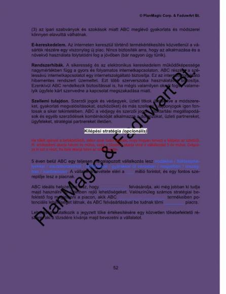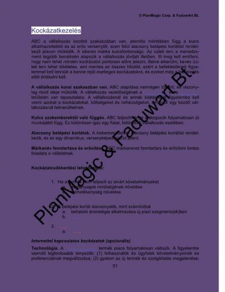 • Az üzleti terv megírása után kell ezt a részt megírni.