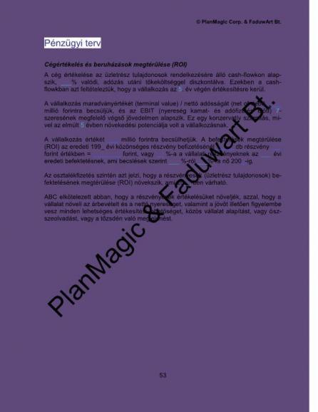 • Pénzügyi terv