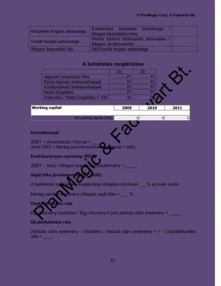 • hogyan alakul a pénzeszköze, eredménye az elkövetkezendő években.