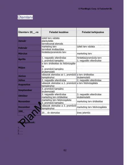 • Ütemterv